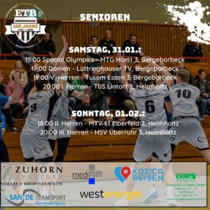 Spieltag Die Europameisterschaft auf der Zielgeraden; aber auch das ETB-Wochenende hält einiges bereit: Alle Seniorenmannschaften sind im Einsatz; die 1. Herren empfängt mit Lintorf den nächsten Aufstiegsaspiranten,