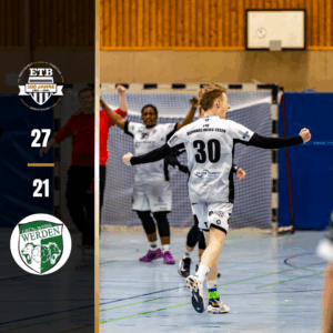 Zweites Derby – Zweiter Sieg: ETB mit guter Abwehrleistung zum Sieg gegen Werden ETB I – GW Werden I 27:21 (13:11) Am Sonntagabend empfing die 1. Mannschaft