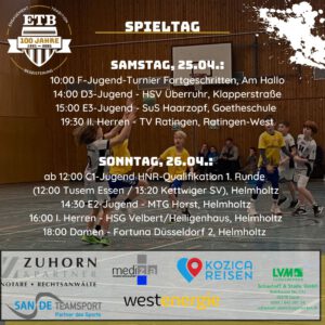 Spieltag Ein spannendes (Handball-)Wochenende erwartet uns. „Siegen oder Fliegen“ heißt es bereits am Samstag beim Gastspiel unserer Zweiten im Playoff-Viertelfinale in Ratingen.Voller Fokus auf den Sonntag im