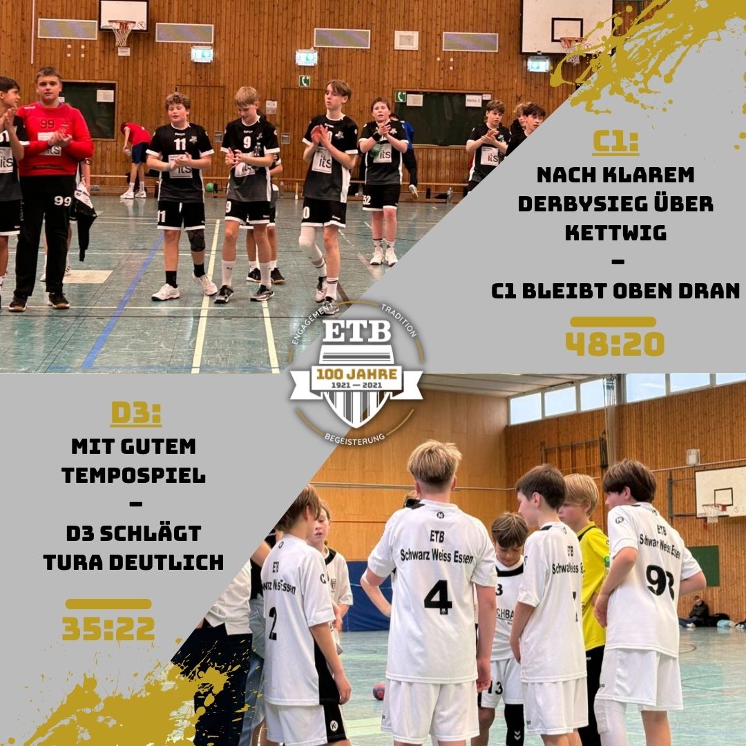 Klare Sache für unsere C1, die mit dem vierten Saisonsieg in der Tabelle oben dran bleibt. Das Derby gegen Kettwig dominierten unsere Jungs in allen Belangen. Mit guter Abwehrarbeit konnten viele Bälle früh erobert und übers Tempospiel verwertet werden – 17:2 stand es bereits nach 13 Minuten. Die Deckung konnte das gute Anfangsniveau nicht ganz halten und bekam nicht immer Zugriff. Mit Umschalt- und Angriffsspiel hatte man Spiel und Gegner aber weiter gut unter Kontrolle, ohne wirklich die letzte Zielstrebigkeit an den Tag zu legen. Neben Vereins-Top-Torschütze Jannik Luderich waren unsere D-Jugendlichen Anton Rathleff und Leander Tech die besten Schützen bei unserer wenig geforderten C1.