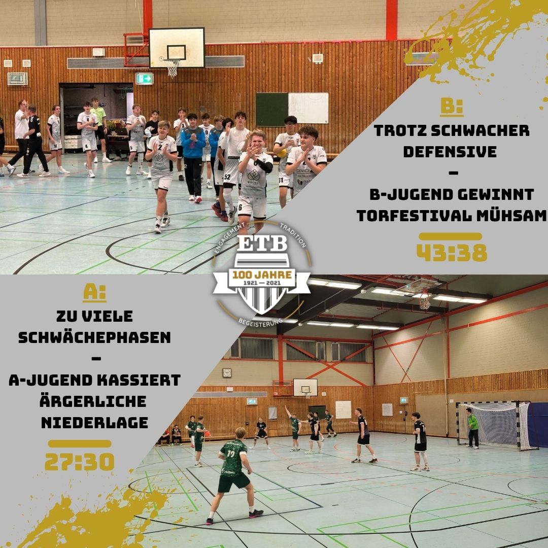 Derbyniederlage für unsere A-Jugend gegen die Mannschaft aus Werden. Nach schlechtem Start und 3:6 Rückstand brachte die Hereinnahme der verbandsligaerfahrenen Matteo Odendahl und Joris Röder kurzzeitig Struktur ins Angriffsspiel unserer Mannschaft, die per 6:0 Lauf auf 9:6 stellen konnten. Konstanz fehlte aber an diesem Tag und so brachten einfache Ballverluste den Gegner immer wieder ins Spiel zurück. Spielerische Lösungen waren Mangelware – zu oft versuchte man es mit unvorbereiteten 1 gegen 1 Duellen oder Anspielen an den Kreis, wodurch es der Werdener Deckung leicht gemacht wurde. Auf der anderen Seite fehlte der ETB-Deckung das konsequente Verschieben zur Ballseite, wodurch die Jungs viele große Räume verteidigen mussten. Gerade die Schlussphase war geprägt von Ungenauigkeiten und Nachlässigkeiten; die 27:30 Niederlage ebenso ärgerlich wie folgerichtig.
