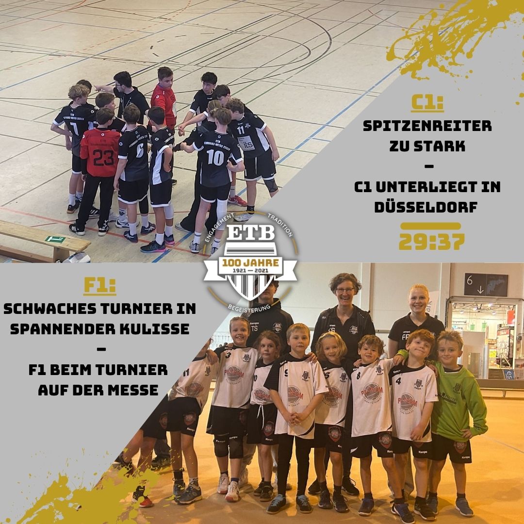 Beim verlustpunktfreien Tabellenführer in Gerresheim kassiert unsere C1 die zweite Saisonniederlage. Gegen den Favoriten erzwangen unsere Jungs eine über weite Strecken ausgeglichene erste Hälfte, in der sich der Gastgeber erst in den Schlussminuten auf vier Tore absetzen konnte. Stimmten Bewegung ohne Ball und Passtiming kam man aus dem Rückraum erfolgreich zum Abschluss; von den Außenpositionen erlaubte man sich dagegen ein paar schwache Abschlüsse zu viel. Die ETB-Deckung hatte vor allem mit den beiden körperlich starken Halbangreifern der Düsseldorfer große Probleme, denen unsere Jungs im körperlichen Zweikampf selten das Wasser reichen konnten. Bis zum 23:20 blieb der Rückstand eng, dann stieg bei unserer Mannschaft die Zahl der leichten Fehler extrem an, sodass die Gastgeber die Partie vorentscheiden konnten. Unsere Jungs gaben zwar nicht auf, kamen aber nicht an die Topleistung heran, die es an diesem Tag gebraucht hätte. So setzte sich der Tabellenführer verdient mit 37:29 durch.