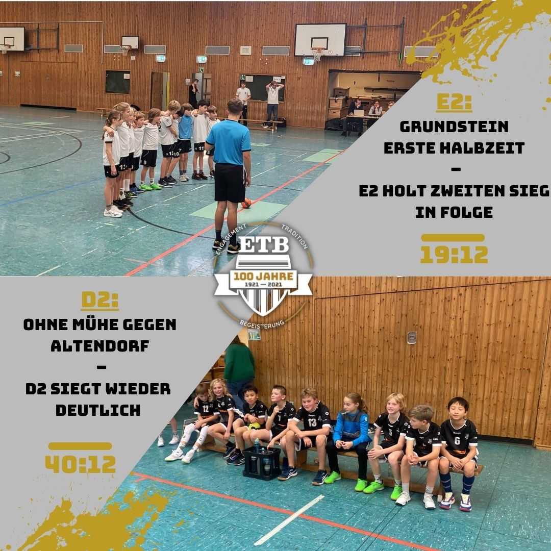 Gegen TuRa Altendorf gelingt unserer E2 der zweite klare Sieg in Folge. Ähnlich wie in der Vorwoche hatte man die Offensive des Gegners im 3 gegen 3 eigentlich gut unter Kontrolle. Zu Toren kam der Gast fast nur, wenn unsere Mannschaft durch ungenaue Pässe den Ball verlor – und Ballverluste gab es im ersten Durchgang zu viele. Offensiv war es vor allem die Durchschlagskraft von Henri Heitmann und Jonas Graszk, durch die unsere Mannschaft dem Foulspiel entkommen konnte und zu Toren kam. Nach 12:6 Pausenführung tat man sich im zweiten Durchgang gewohnt schwerer; es fehlte an Bewegung und Zug zum Tor. Viele Würfe mussten ohne Anlauf genommen werden und blieben zumeist beim Altendorfer Torwart hängen. Auf der anderen Seite war weiter Verlass auf die ETB-Abwehr, die nach wie vor wenig zuließ. So konnte der Vorsprung zwar nicht weiter ausgebaut werden, der Sieg geriet aber nicht in Gefahr. Gute Leistungen zeigten Milan Graszk und Ben Schnell im ETB-Tor.