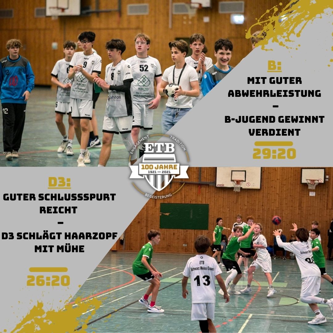 Eine gute Saison spielt weiterhin unsere C2, die trotz heute dünner Besetzung gegen den Tabellennachbarn aus Mettmann bereits den fünften Saisonsieg einfährt. In der Anfangsphase sah es danach zunächst nicht aus – die ETB-Offensive tat sich schwer, die Gäste-Abwehr zu bespielen. Zu wenig Bewegung, immer wieder versuchte man es aus dem Stand und blieb so fast immer hängen. Hinzu kamen große Schwächen beim Torabschluss. So hatte der spielerisch ebenfalls nicht überragende Gegner zunächst die Nase mit 9:5 vorn, ehe unsere Mannschaft mit besserer Deckung zu Ballgewinnen kam. Mit einfachen Toren lief das Spiel dann besser und unsere Jungs konnten die Partie bis zum Halbzeitpfiff auf 15:14 drehen. Eng blieb die Begegnung auch im zweiten Durchgang, in dem unsere Mannschaft zumeist in Führung lag, sich aber durch unnötigen Ballverluste die Chance nahm, die Begegnung frühzeitig zu entscheiden. Dies gelang dann aber in den Schlussminuten. Gestützt auf einen starken Frederik Actun im Tor und mit zielstrebigeren 1 gegen 1 Aktionen durch die Rückraumspieler Mikkel Stenzel und Theo Kratz Santana wurde sich bis zum Schlusspfiff auf 31:27 abgesetzt. Ein hart erarbeiteter, aber verdienter Heimsieg für unsere C2.