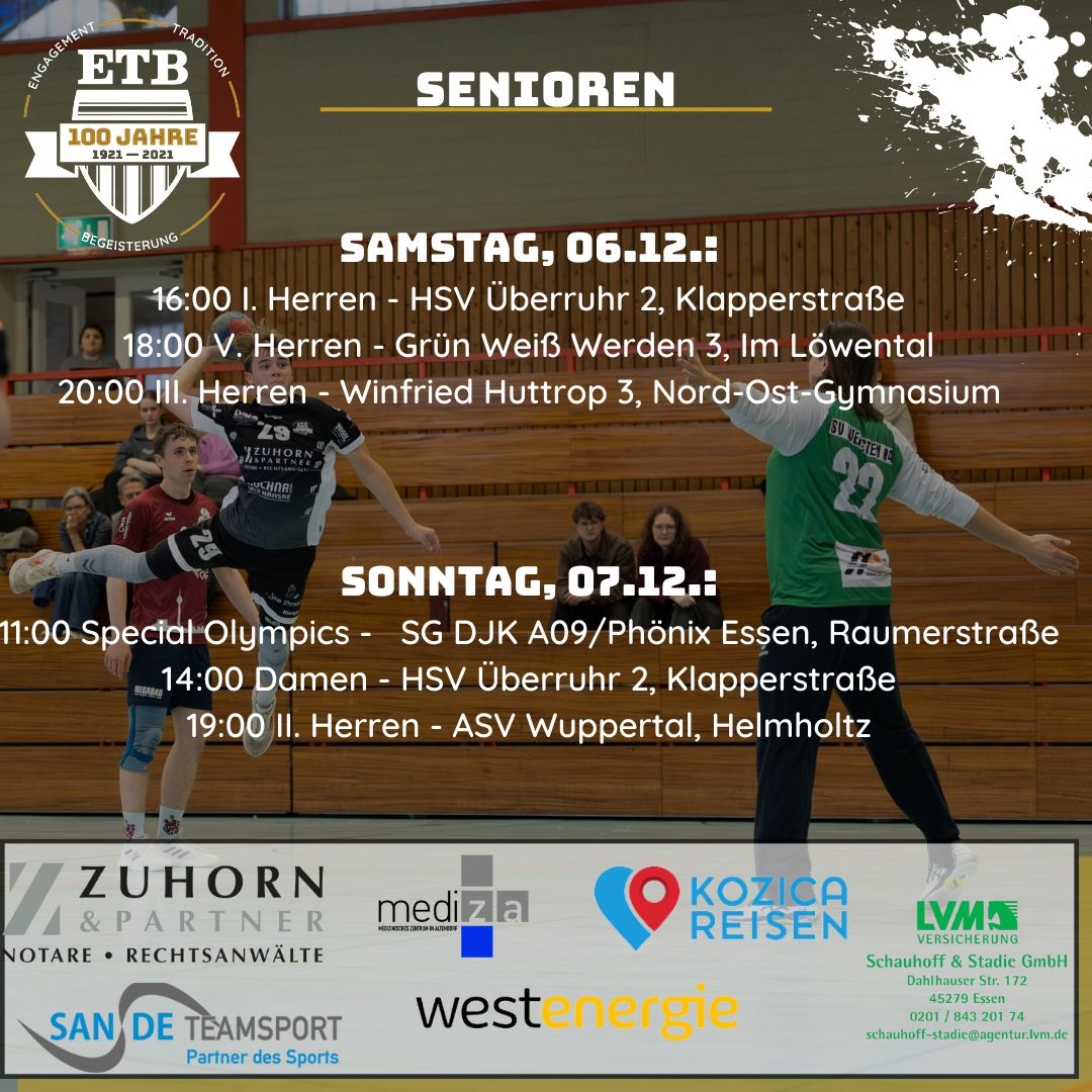 Das Nikolaus-Wochenende hält einiges bereit: Alle sechs Seniorenmannschaften sind im Einsatz – 1. Herren und Damen treten jeweils zum Derby in Überruhr an.