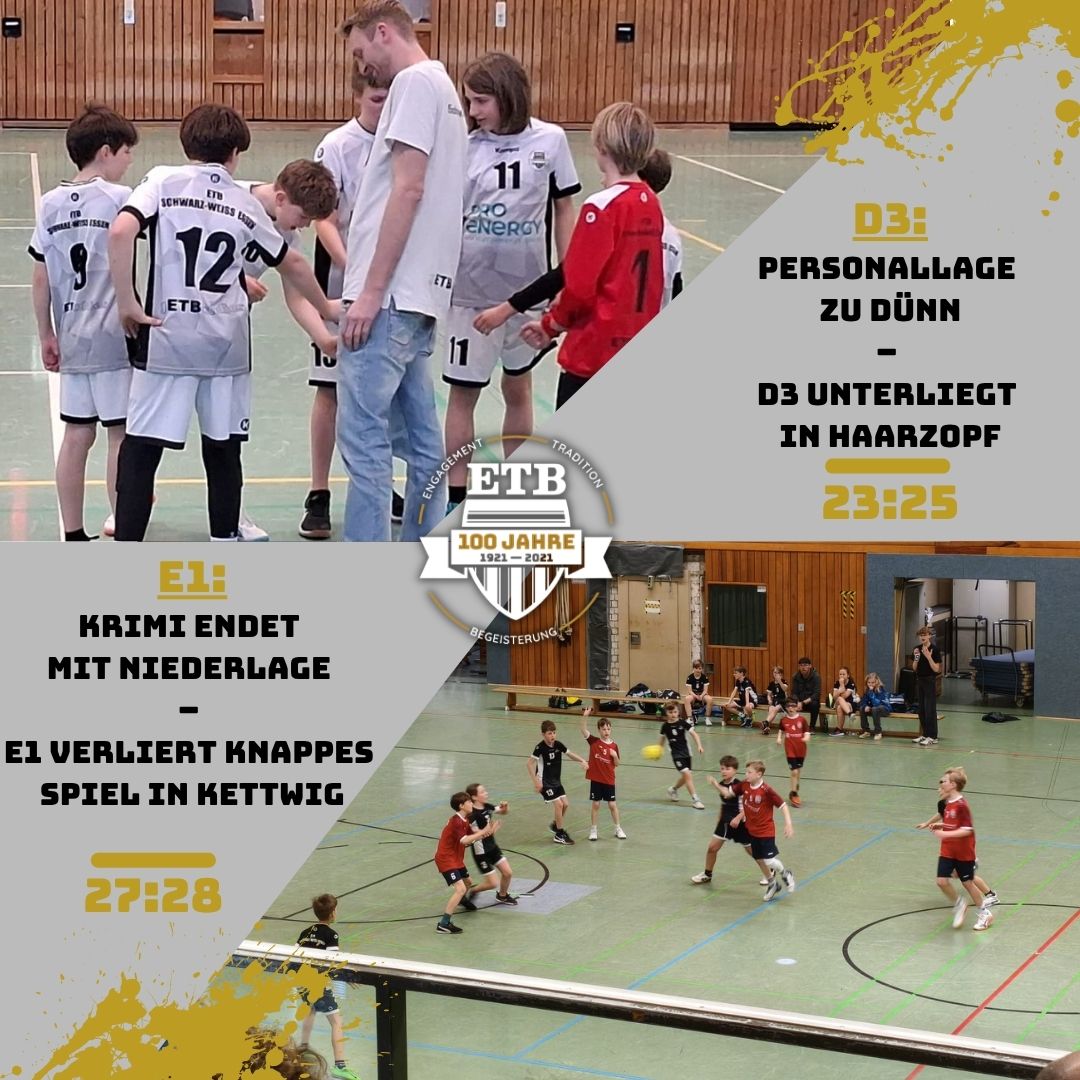 Beim Kettwiger SV kann unsere E1 den Hinspielerfolg nicht wiederholen und kassiert die zweite Niederlage in Folge. Denkbar schlecht der Start ins Spiel; die Abwehr noch nicht auf der Höhe des Geschehens, zu weit weg von ihren Gegenspielern um vom Tempospiel der Gastgeber immer wieder überrascht. So geriet man bereits in der Anfangsphase in Rückstand. Der Angriff fand dagegen schneller ins Spiel und konnte sich vor allem auf die Abschlussstärke von Jakob Peitsch verlassen. Bis acht Minuten vor Schluss hatte der 4-Tore-Rückstand Bestand, ehe unsere E1 ihre beste Phase erwischte. Die Abwehr um die starke Sophie Plum stand besser, konnte viele Pässe anfangen oder Bälle herausprellen. Über Tempotore kam man wieder heran und ging drei Minuten vor Schluss erstmals selbst in Führung. Die letzten Minuten dann unglücklich für unsere Mannschaft; die letzten beiden Treffer gehörten den Gastgebern, sodass sich unsere E1 nach knappem Spiel hauchdünn mit 27:28 geschlagen geben musste.