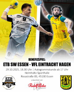 Am Mittwoch, den 29. Oktober 2025, spielt unsere 1. Herrenmannschaft in einem Benefizspiel gegen den Zweitligisten VfL Eintracht Hagen. Mit dieser Veranstaltung wollen wir die Teilnahme unserer Special Olympics-Mannschaft an der Deutschen Meisterschaft 2026 im Saarland unterstützen – ein Projekt, das uns allen am Herzen liegt.